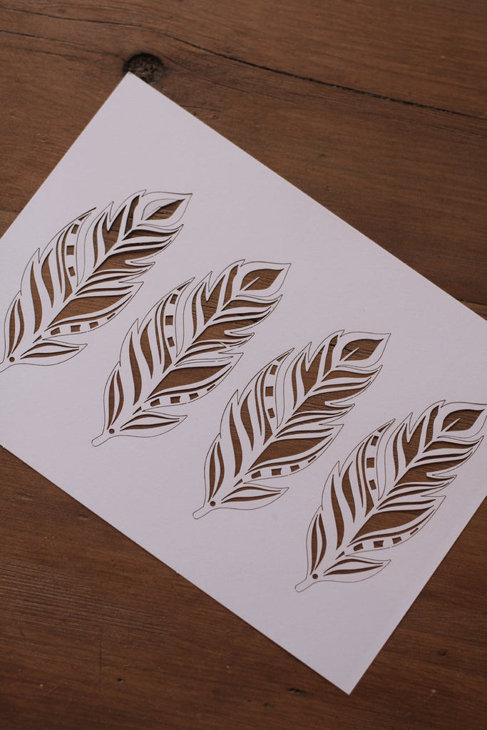 Dieser Papierbogen mit 4 kleinen Federn ist perfekt, um einen filigranen und dezenten Blickfang in deinem Landhaus zu integrieren.